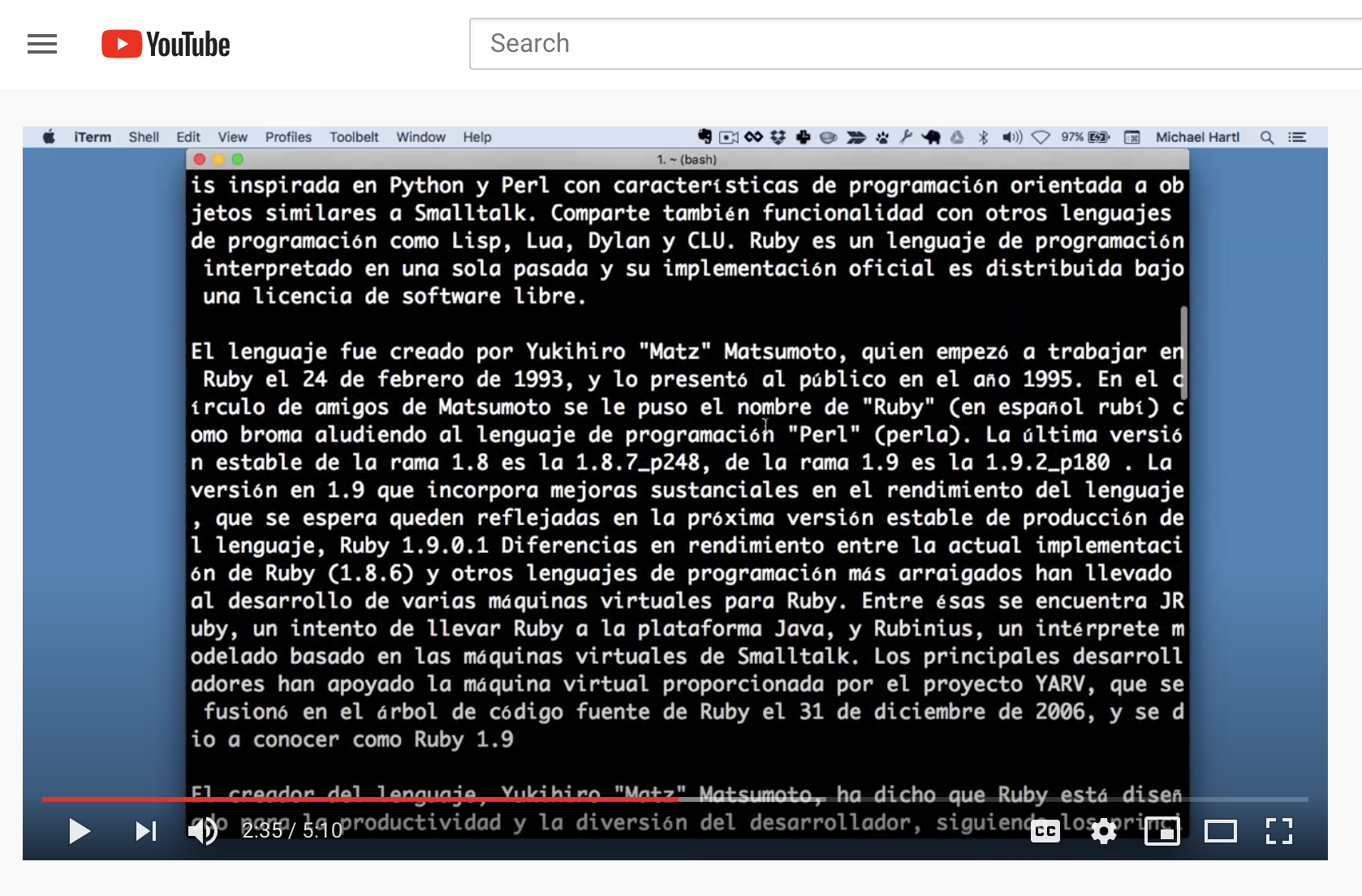 I’m pleased to announce that the first set of free online videos has now been released. Naturally enough, we started with videos from the first Learn Enough tutorial, Learn Enough Command Line to Be Dangerous, available here: